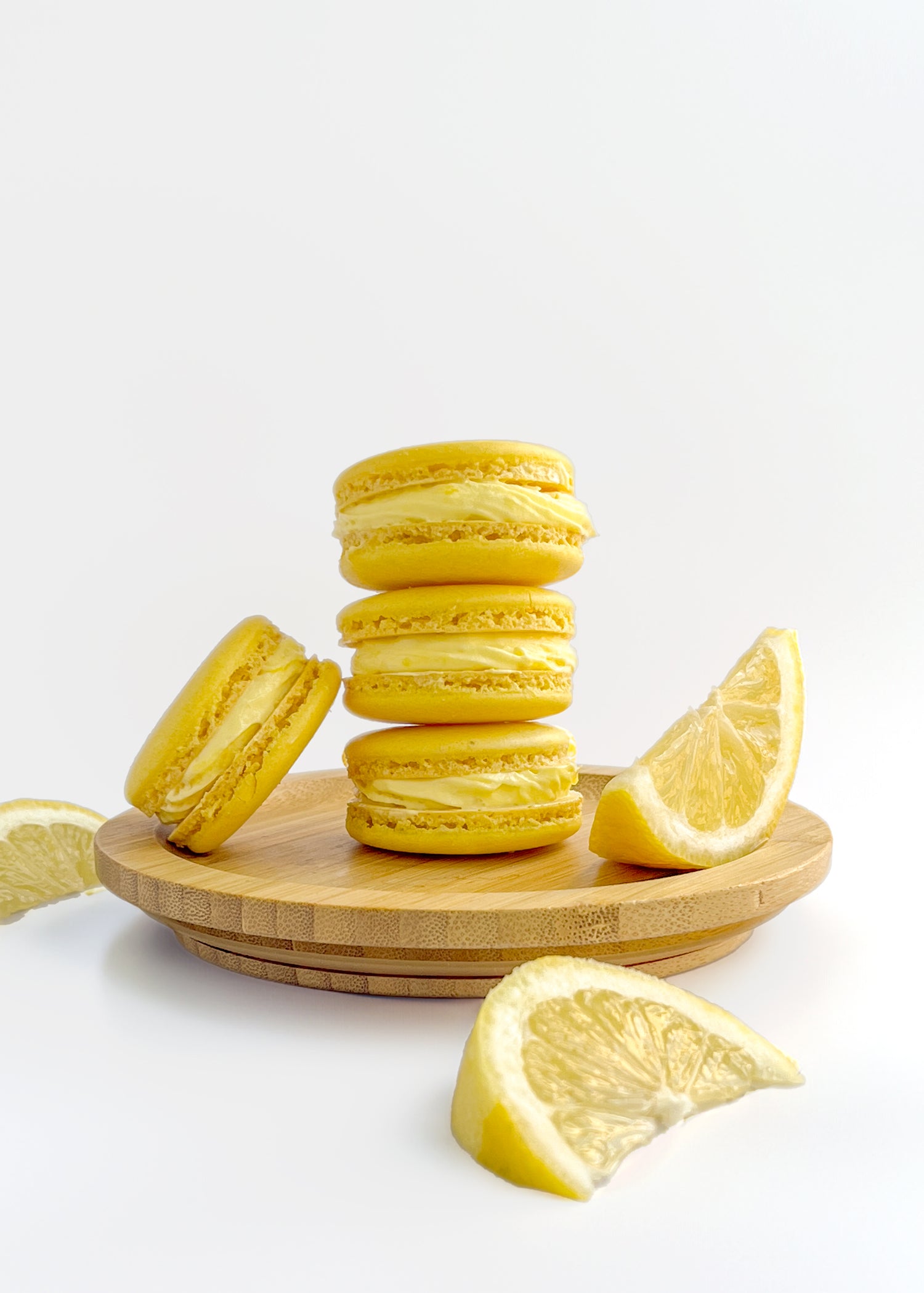 Made with fresh lemons, each macaron is filled with a zesty lemon buttercream and tart lemon curd.